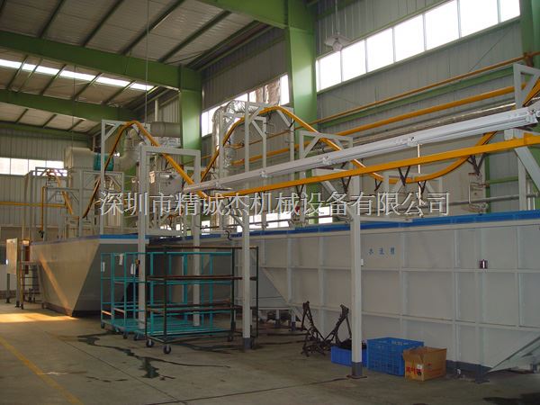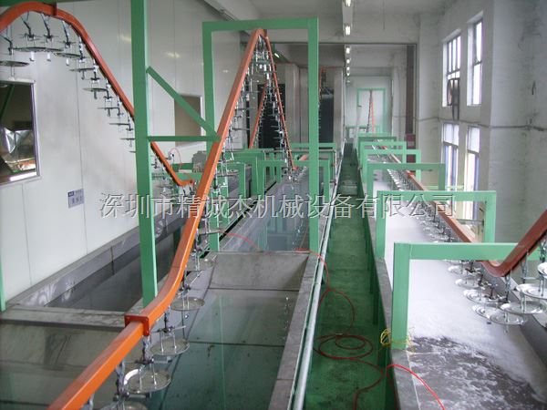 游浸式前处理特点:工件通过悬挂线输送 以游泳的方式在药池中进行处理,具有大批量连续作业特点,处理效果好,易于保养,且药水用量小。相对占地较大,且只能安放于地面适用于各种形状态及油脂含量高的工件处理,不适台漂浮的工作。