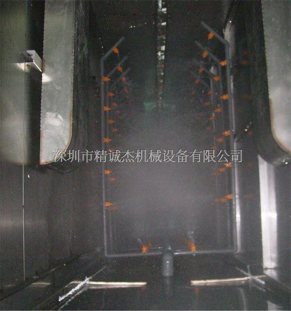 喷淋式前处理特点:工件通过悬挂线输送,药水通过喷淋管对工件表面进行喷射淋浴式处理,由于喷射产生一定压力使工件表面能得到较好冲洗效果,具有大批量连续作业之特点,适合大工件自动化前处理。设备投资相对较大,运行成本高于浸泡式前处理。
