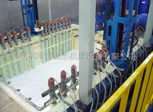 电泳槽内表面涂绝缘防腐材料,耐压20000伏。主循环系统:主循环系统是完成电泳槽液的搅拌和过滤。漆液搅拌系统可保证漆液均匀,管路上装有滤网和过滤器。系统中所有管路及阀门均采用不锈钢材料,根据其温度要求,设置保温层,并在适当位置装有冲洗接头,过滤器采用袋式吸油的材料。主循环泵设有备用电源(用户备)。搅拌喷嘴采用引射式,增大其搅拌能力。