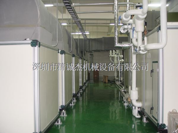 机组有新回风段、初效过滤段、表冷挡水段、(蒸汽、热水或电)加热段、(蒸汽或电)加湿段、排风回风调节段、均流段、消声段、回风机段、送风机段、中间段、中效过滤段、送风段等。功能段齐全,可供不同要求用户灵活选用组合。