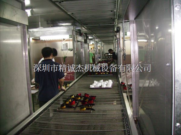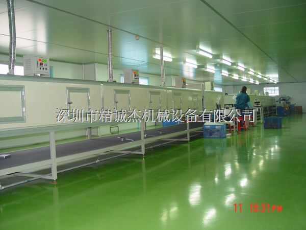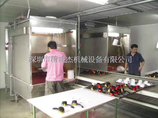 工艺流程:上件→手工静电除尘→除湿→自动静电除尘→手工喷漆→流平→烘干→品检→丝印→包装
