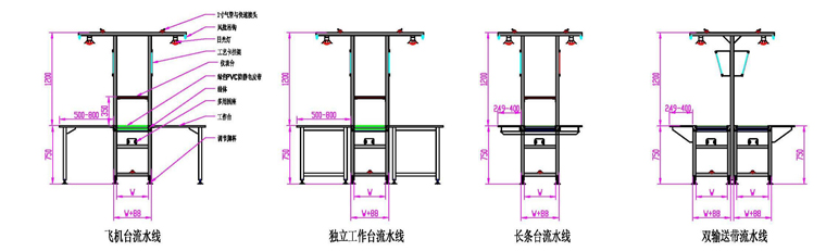 3、输送带结构组成:单输送带、双边输送带(可环形输送),三带组合两边输送,中间返送不良品;